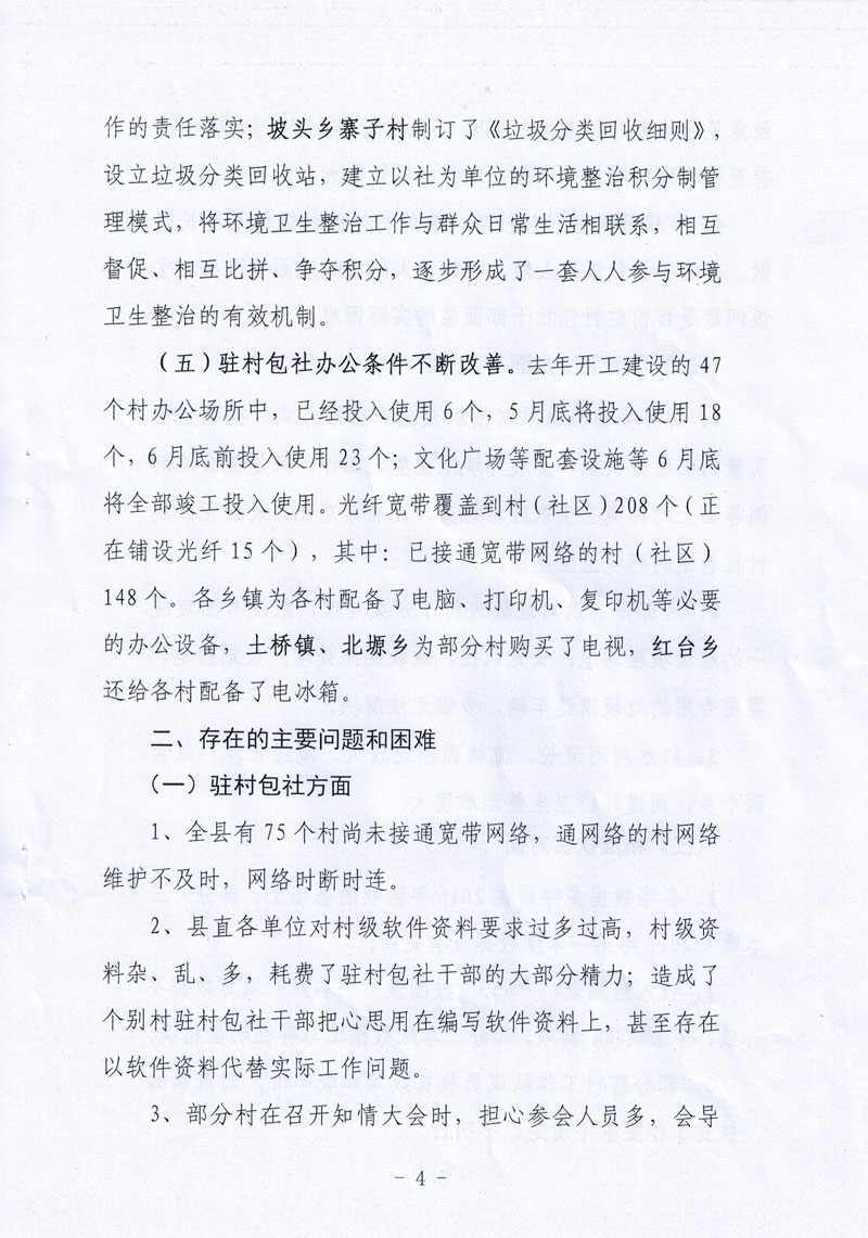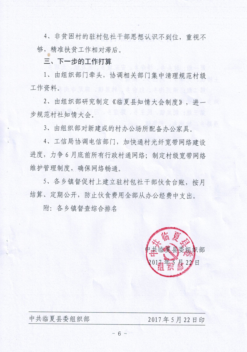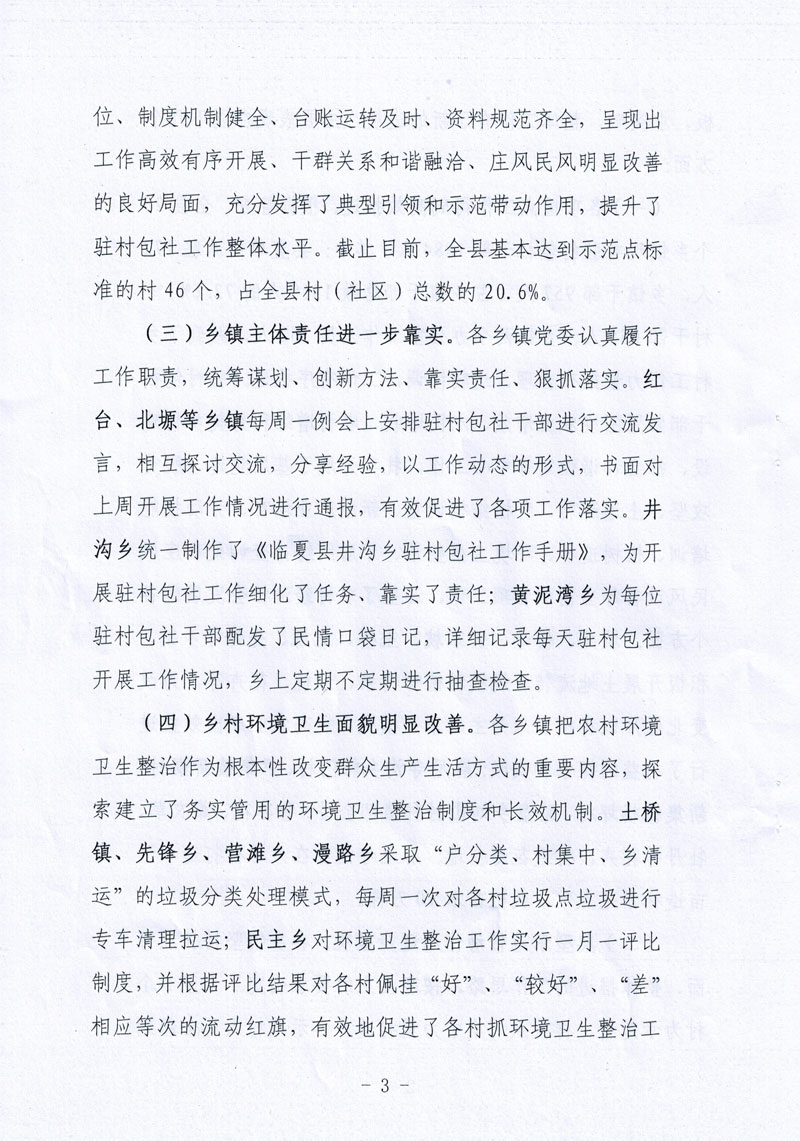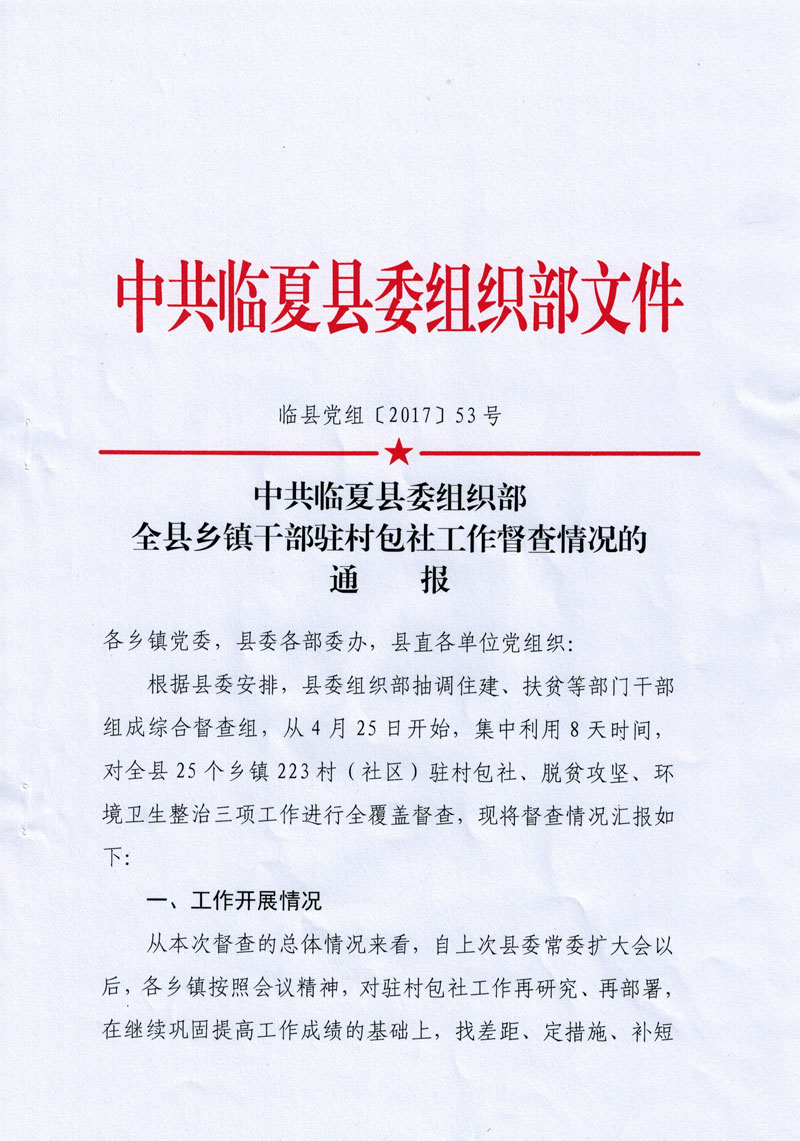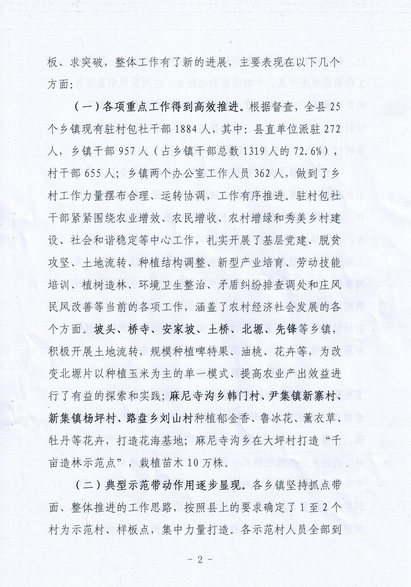 全县乡镇干部驻村包社工作督查情况的通报